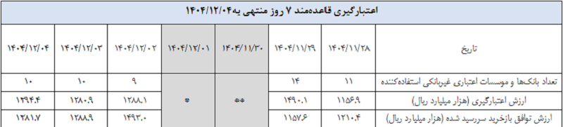 گزارش عملیات اجرایی سیاست پولی (۴ اسفندماه ۱۴۰۴) به شرح زیر است: